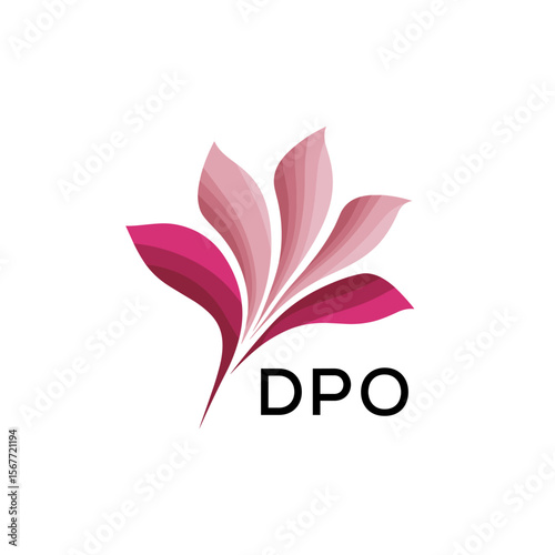 Abstract Pink Flower Petals Logo with Typography , DPO Later Logo, Elegant Gradient Botanical Emblem with Text DPO , Creative Nature-Inspired Logo Concept Isolated on White.