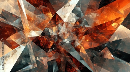 abstract, art, polygonal, geometric, shape, pattern, design, background, texture, digital, graphic, illustration, style, modern, contemporary, artwork, colours, colours, orange, red, brown, grey, white, black, line, angle, sharp, edge, faceted, shiny, glossy, reflective, light, shadow, contrast, composition, dynamic, energetic, vibrant, chaos, order, complexity, simplicity, minimalism