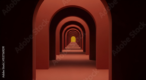 archway, corridor, hallway, tunnel, red, maroon, brown, orange, yellow, light, minimalist, abstract, background, architecture, design, geometric, pattern, perspective, pathway, way, journey, future, hope, progress, forever, endless, loop, simple, clean, modern, contemporary, illustration, graphic, texture, space, interior, no people, nobody, surreal, vibrant, deep, dark