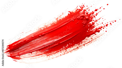 Abstract red Brush Stroke with Ink Splashes Isolated on a White Background for a Minimalist Look