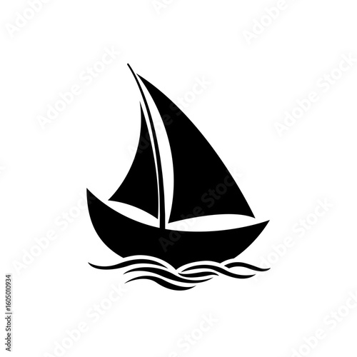 Abstract Sailboat on Water Icon. Minimalist Sailing Doodle. Hand-Drawn Black and White Vector Graphic of a Boat on the Sea.