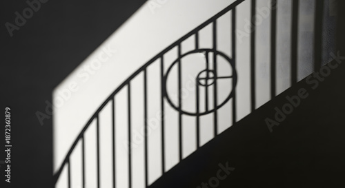 shadow, light, contrast, abstract, minimalist, railing, staircase, baluster, architecture, interior, wall, black-and-white, monochrome, geometric, pattern, design, sunlight, natural light, composition, spiral, curve, line, vertical, modern, contemporary, detail, texture, indoor, home, hallway, graphic