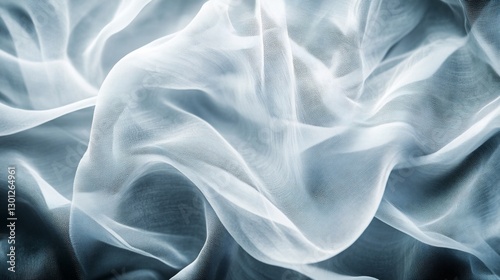 fabric, sheer, textile, clothes, material, texture, light, shadow, flowing, abstract, soft, delicate, airy, transparent, wavy, smooth, curve, pattern, design, surface, background, elegance, gentle, aethereal, subtile, graceful, fluid, movement, semitransparent, mesh, netting, white, light blue, grey, detail, macro, closeup, synthetic, fiber, organic