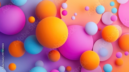 Abstract simple background with beautiful multi-colored circles or balls in flat style like paint bubbles in water. 3d render of particles, colored paper applique. Creative design. 3D Illustration .