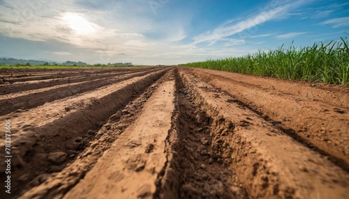field, agriculture, landscape, sky, land, nature, dirtied, rural, farm, road, earth, dirt, blue, ground, plowed, farming, horizon, brown, countryside, spring, cultivated, farmland, summer, country, cloud