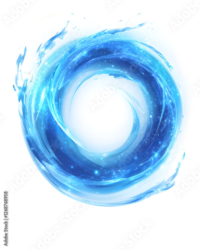 Abstract swirling blue vortex with glowing particles on transparent background. Perfect for digital art, design, or technology concepts
