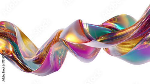 Abstract swirling lines with vibrant metallic rainbow gradient creating colorful flowing motion and dynamic pattern isolated on white background