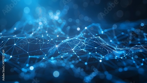 Abstract technology background with digital connections and polygonal network lines on a blue gradient, futuristic abstract vector illustration of cyberspace or big data connection concept. Banner des