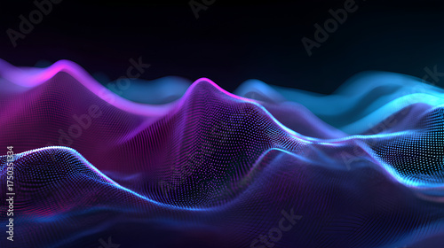 Abstract technology conсept of purple and blue neon gradient 3d lines. Glowing futuristic waves, sound waves and audio waveform. Artificial Intelligence, big data, information graphics