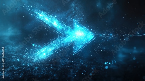 Abstract upward arrow with electric blue glow, symbolizing digital progress and technology