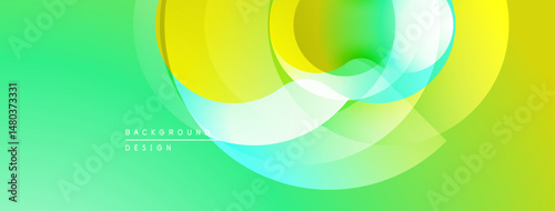 Abstract vibrant design. Overlapping circles create dynamic composition. Green, yellow, turquoise hues blend seamlessly. Modern background texture.