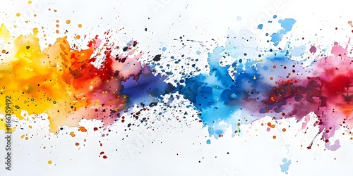 Abstract watercolor background with vibrant colors and isolated paint splatters. Concept Abstract Art, Watercolor Painting, Vibrant Colors, Isolated Splatters
