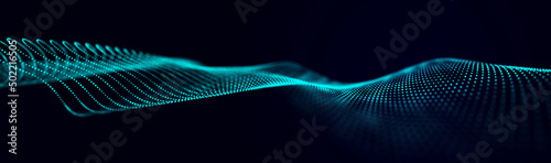 Abstract wave of sound particles. Equalizer for music. Signal transmission. 3d rendering.