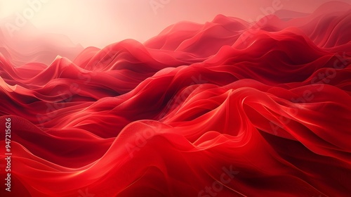 Abstract waves of vibrant red fabric create a surreal, undulating landscape against a soft pink horizon, evoking passion and energy.