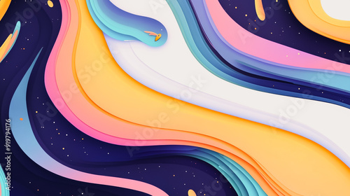 Abstract white background with pastel colorful 3D abstract background overlap layer on dark space with wave decoration. Modern graphic design element motion style concept for banner, flyer, card,