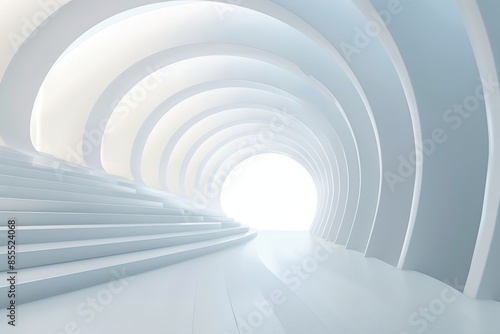 tunnel, white, abstract, staircase, light, futuristic, arch, design, three-dimensional, rendering, minimalism, geometry, curve, shape, bright, modern, interior, architecture, hallway, corridor, empty, space, structure, concept, perspective, pattern, line, smooth, clean, simple, elegant, art, background, graphic, illustration, style, vector, circle, business, hall, geometric, technology, wave, spiral, city, wall, motion