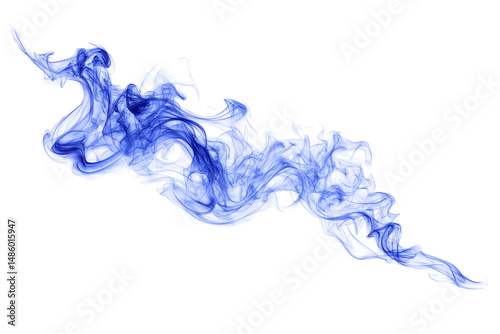 Abstract wisps of blue smoke isolated on white background