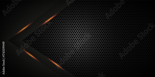 Abstract yellow light arrow on black with hexagon mesh design modern luxury futuristic technology background vector illustration.
