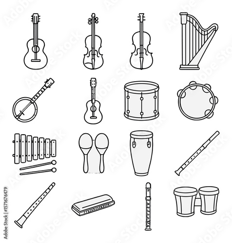 acoustic, instrument, musical, icon, simple, elegant, collection, composition, guitar, drum, fiddle, harp, maracas, tambourine, flute, banjo, harmonica, bongo, xylophone, clarinet, percussion, string, melody, rythm, performance, art, entertainment, musician, sound, classic, style, design, cultural, traditional, graphic, note, vintage, harmony, orchestral, concert, band, timbre, play, creative, iconic, unique, visual