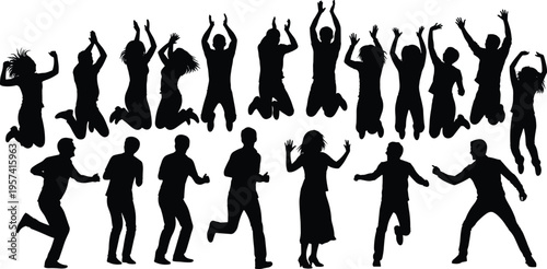 silhouette, people, jumping, running, crowd, happy, celebration, group, active, motion, success, joy, freedom, energy, human, together, black, party, sport, fun, exercise, lifestyle, community, collection, man, woman, diverse, team, happiness, move, shape, winner, dynamic, youth, healthy