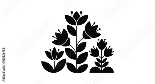 stylised, arrangement, black, flower, triangular, shape, symmetric, organised, evenly, balance, harmony, artistic, design, pattern, floral, monochrome, graphic, visual, aesthetic, composition, geometry, botanical, illustration, minimalist, modern, abstract, decorative