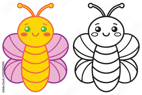 Adorable Cartoon Bee Butterfly Coloring Page for Kids Learning and Fun Activities