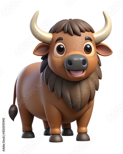 bull, cartoon, animal, cute, funny, illustration, isolated, white background, mammal, farm animal, cattle, ox, bovine, horn, fur, standing, character, mascot, clip art, design element, decoration, cheerful, playful, happy, smiling, eye, nose, mouth, tail, hoof, brown, beige, light brown, dark brown, mane, furry, oriental zodiac, agriculture, farm animal, ranch, farm, countryside, friendly