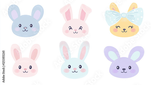 Adorable Cartoon Bunny Faces with Pastel Colors