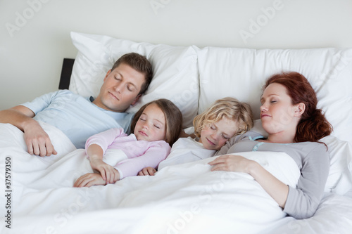 Adorable family snoozing together
