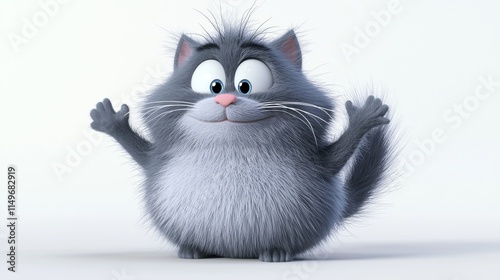 fluffy, three-dimensional, cartoon, cat, cute, character, animation, cheerful, friendly, big eye, paw, playful, happy, whimsical, gesture, smile, joy, pet, fantasy, design, illustration, digital, fun, silhouette, graphic, adorable, inviting, pose, animated, expression, furry, closeup