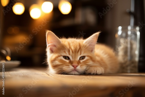 background, orange, cat, kitten, light, home, animal, ginger, portrait, bokeh, interior, wood, pet, tabby, red, felino, cute, adorable, close, relaxing, mammal, domestic, up, serene, cosy, furry, table, warm, soft, playful, comfort, lying, young, whisker, resting, down, peaceful, calmness, relaxation, paw, sweet, innocent, calmness, indoor, sleepy