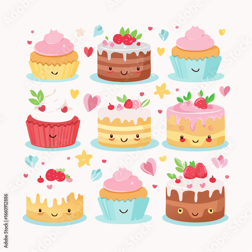 Adorable Kawaii Cakes & Cupcakes Vector Collection