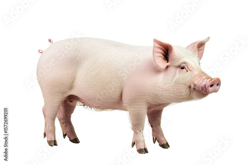 pig, baby pig, domestic pig, swine, hog, farm animal, farm animal, agriculture, cut-out, light pink, furry, animal portrait, half face, studio shot, full body, realistic, detailed, vector, illustration, graphic, design element, mascot, cartoon
