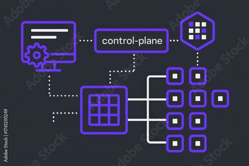 Advanced control-plane architecture visualization showcasing connectivity between digital nodes in a modern technology framework emphasizing data flow and system integration representation