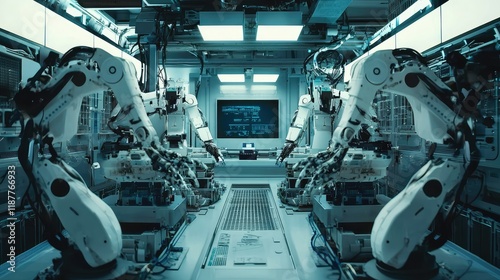 Advanced Robotic Arms in a Futuristic Industrial Environment