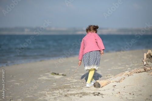 adventure, beach, blue, children, dress, girl, jacket, children, pink, sand, time, walking, water, yellow, sea