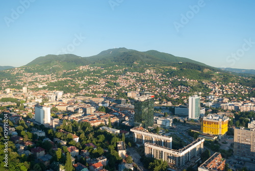 Aerial city landscape view of Sarajevo