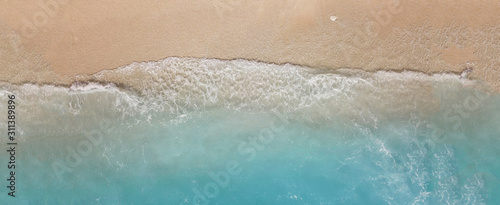 Aerial drone ultra wide panoramic photo of tropical exotic seascape in Indian ocean island with turquoise beautiful sea