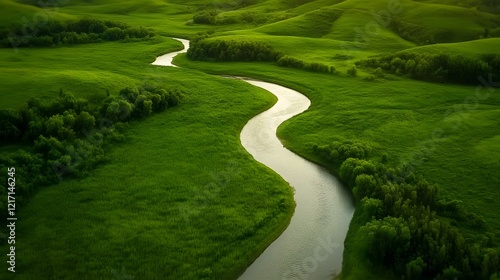 scenic, idylli, landscape, pastoral, countryside, natural, lush, verdant, meadow, field, winding, river, stream, waterway, flowing, curving, meandering, aerial, overhead, drone, vista, panoramic, serene, tranquil, peaceful, bucolic, rural, rolling, hill, greenery