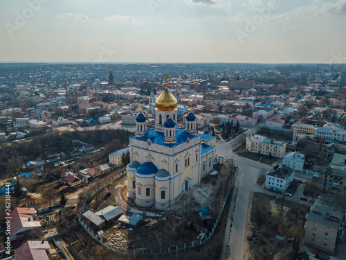 Aerial view from drone of Ascension Cathedral in Yelets, Lipetsk region, Russia