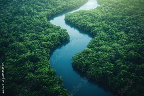 aerial, river, forest, green, water, nature, landscape, tree, amazon, rainforest, wilderness, jungle, wood, environment, scenery, flowing, serene, untouched, ecosystem, dense, foliage, vegetation, curve, panorama, remote, expanse, wild, beauty, fresh, clean, overlook, drone, view, stream, lush, topography, verdant, branch, sky, sunlight, peace, travel, vacation, adventure, journey, tranquil