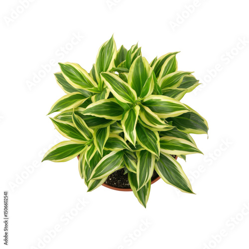 Aerial View of a Lush Green and Yellow Variegated Plant in a Terracotta Pot