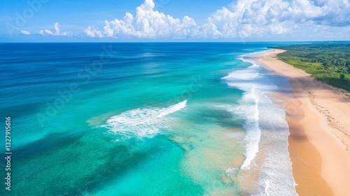 beach, ocean, sea, sand, coast, shore, wave, water, turquoise, blue, sky, cloud, tropical, summer, travel, vacation, paradise, landscape, nature, scenic, beautiful, view, aerial, drone, photo, bright, sunny, horizon, calm, serene, relaxing, peaceful, idylli, get-away, escape, holiday, coastal, shoreline, white, clear