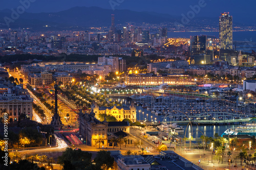 barcelona, spain, port, architecture, boat, yacht, twilight, night, evening, illuminated, aerial view, europa, boat, building, city, city landscape, european, harbor, house, illumination, marina, historical building, skyline, skyscraper, street, urban, yacht