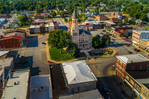Aerial View of Courthouse and Town Square of Rural Salem Indiana.