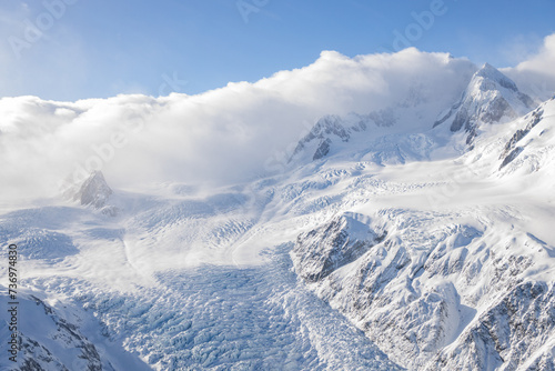 outside, landscape, travel, new zealand, cloud, mountain, snow, nature, glacier, fog, day, colours, south island, winter, mountain, peak, panorama, cold, high, view, white, panoramic, peak, aerial, mount