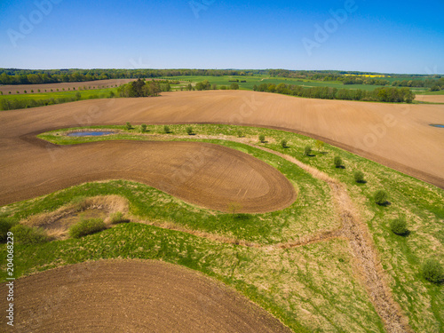 aerial view of freshly plowed agricultural fields ready to sowing