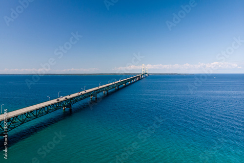 Aerial view of Mackinac Bridge in northern Michigan in summer