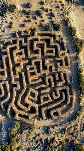 aerial, view, labyrinth, desert, landscape, pattern, nature, environment, structure, scenic, rock, formation, labyrinth, design, symmetry, empty, terrain, unique, geographic, abstract, exploration, adventure, travel, discovery, fascinating, ancient, artistic, arid, geography, beauty, isolated, feature, curve, line, mystery, challenge, natural, dry, shape, immensity, expanse, sunlight