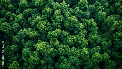 Aerial view of nature green forest and tree. Forest ecosystem and health concept and background, generative ai